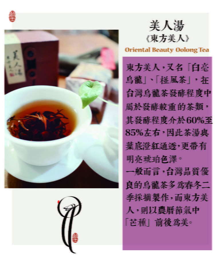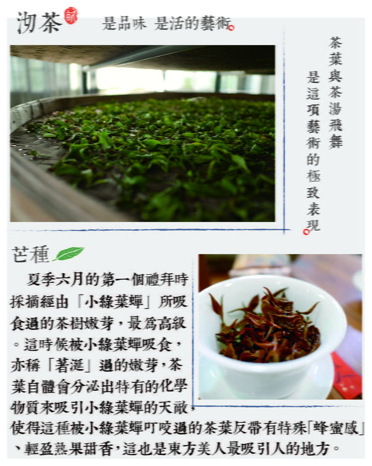品種:青心大冇 產地:新竹峨眉 發酵:重氧化(發酵) 香型:蜂蜜香、果香 滋味:清爽高昂、蜜感、果香 層次:4顆星 內容量:35g